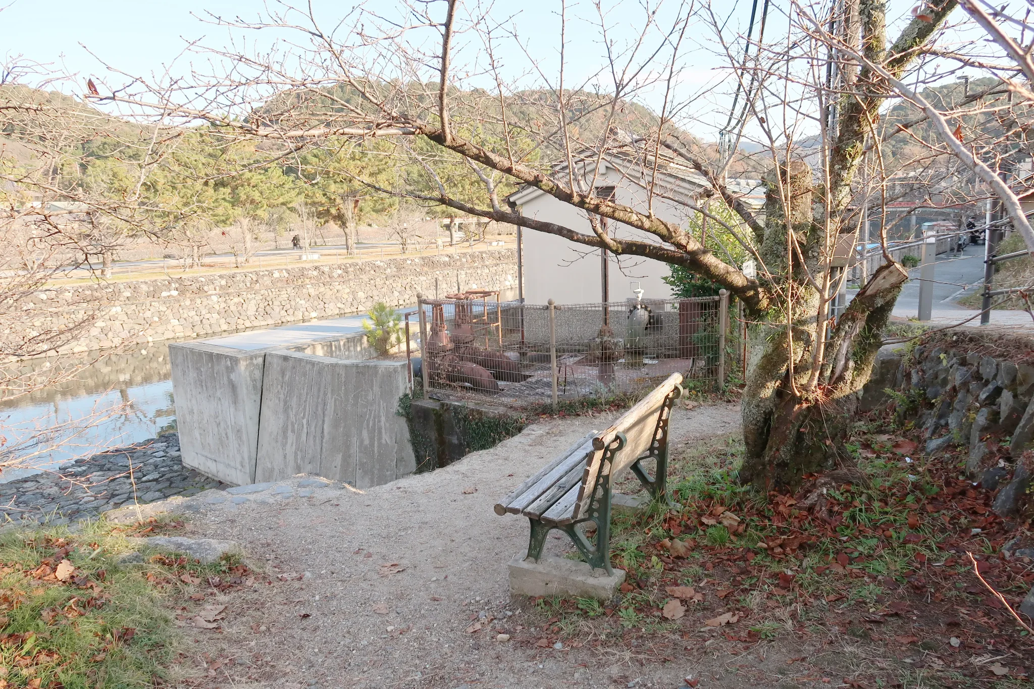 響け!ユーフォニアムの作中に何回か出現する井川用水機場前のベンチ、